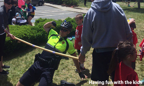 Every year, we participate in Community Policing Week which affords us an opportunity to further our mission of community oriented policing and problem solving. Some of the events we participate in during this week include attending various school sporting events, officers serving free snacks to Walpole High School Students during their snack break in the morning, officers attending a Coffee with a Cop event at a local Walpole restaurant, organizing a “XBOX with a Cop” event at the police station where middle school students are invited to come play non-violent video games with Walpole Police officers, conducting Ride to School events for various students throughout the week, and officers organizing sporting events against local elementary and middle school students. Sporting events include basketball with a cop, hockey with a cop, and gator ball with a cop, officers visiting all schools during lunch break recess to engage the kids, officers organize a Bicycle Safety demonstration and obstacle course for elementary students at Bird Park on a Saturday during this week, and participating in Senior events at the Council on Aging. Events include BINGO and Wii Bowling etc.